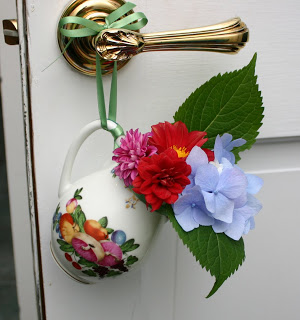 I love the idea of coming home to find flowers on the door. Our creamers make a cute but stunning welcoming. Just wrap a ribbon around the neck and tie it tightly in a bow. Venture into the garden and snip a few buds and you have a small beautiful bouquet ready to greet your guests. OR leave one as a gift for a loved on.