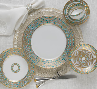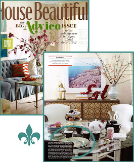 This May's House Beautiful "Big Advice Issue" touched on turquoise while giving advice about durable fabrics and lively but tasteful summer retreats. Seen below on Palecek's table is Syracuse by R. Haviland and C. Parlon.