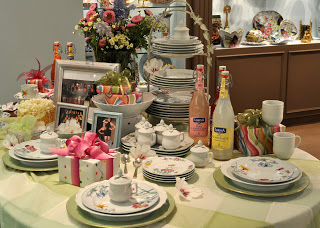 The theme was Bridal Shower Buffet - and we mixed Prosperity with Apple Lace Service plates and Lady Charlotte's Lily dinner plates and tea cups. I love how fresh and fun it is. We received a good response from people. Let us know what you think!