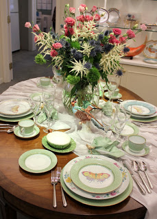 At 41 Madison in New York City the Table Top Show is in FULL SWING! Flowers are arranged and blooming in beautiful and unique vases. Tables are set and bursting with style and decoration. Buyers and designers are scoring the floors looking for ideas for upcoming seasons and displays. Here are a few of the tables being shown at the Mottahedeh Showroom.