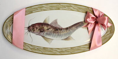 This plank platter is part of our Waterdance service. Each fish from the service is interpreted from Chinese watercolors originally created for export between 1790 and 1850 for the British market. Watercolors featuring flowers, fruits, birds and fish, painted by anonymous Chinese artists were highly sought after by Europeans and Americans for their fine quality and life-like character. The fish that inspired the designs for the service are from a set of watercolor drawings now in the Winterthur Library!