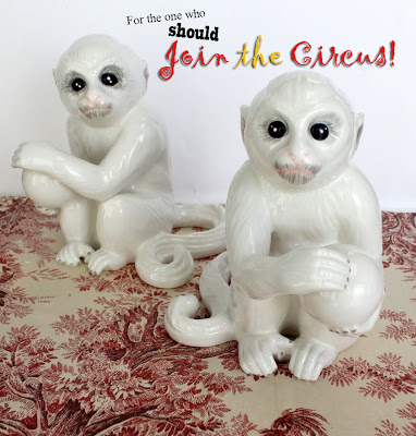 Small White Monkey Bookend Pair (S4324) - $180
