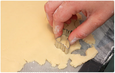 I like to add lemon extract to my sugar cookie recipes. Adds a pleasant and unexpected flavor to daintily decorated sweets. If your cookie dough is sticking, leave it in the fridge for a couple of minutes before rolling out. If you cool them again after they've been cut they won't puff up as much and loose their shape.