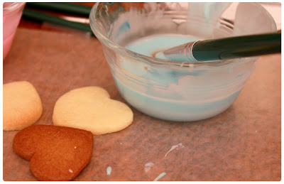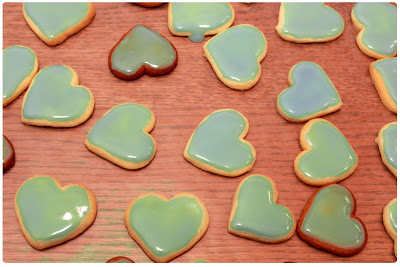 If you combine colors before the frosting as set, they will melt into each other and look like stained glass. If you prefer that colors stay distinct, wait until the first layer sets and then continue on with the detailing.