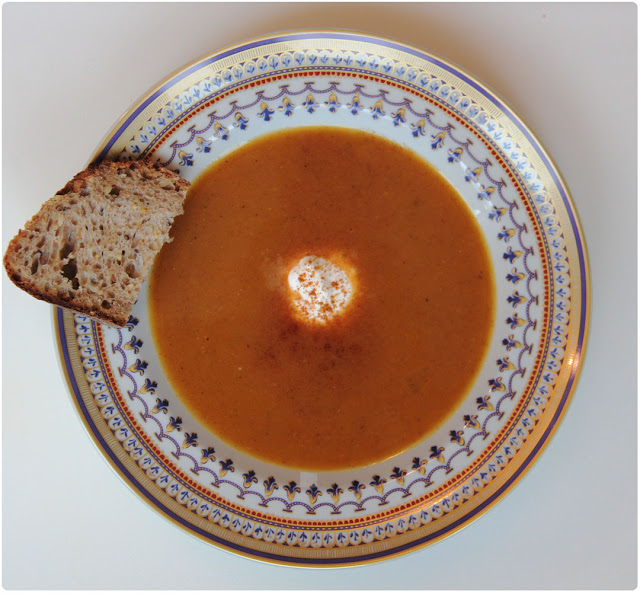 Is there anything more sophisticated then enjoying warm flavorful soup in an exquisite rim soup bowl with a fresh piece of bread from the local bakery? I think not.
