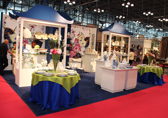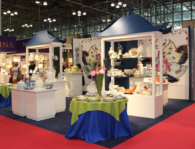 The New York International Gift Fair is in full swing and if you're in the area, and have tickets, you should stop by! We have two large ten-by-ten foot images of our Tobacco Leaf on the back wall and a slew of product on the shelves. We're even showing a preview of our newest dessert pattern, Peacock.