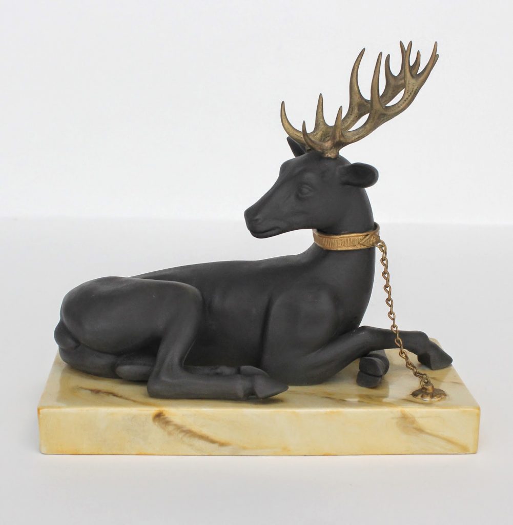Basalt is actually a stone created from lava. It was used in the eighteenth century to make black porcelain and pottery. You can still find antiques today made from basalt. In fact, Mottahedeh used to make their own basalt stag. A piece I've always loved, but one we do not sell any longer... (seen below)