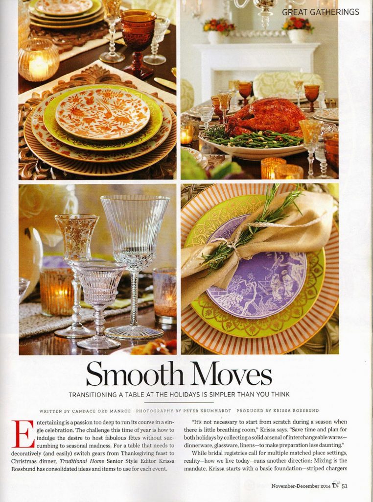 What a beautiful spread the team at Traditional Home has put together for their Smooth Moves article about transitioning a table during the holidays. We love Trad Home and they always do such a nice job showcasing our product. Be sure to pick up an issue for yourself and let us know how you're planning on setting your Thanksgiving table!