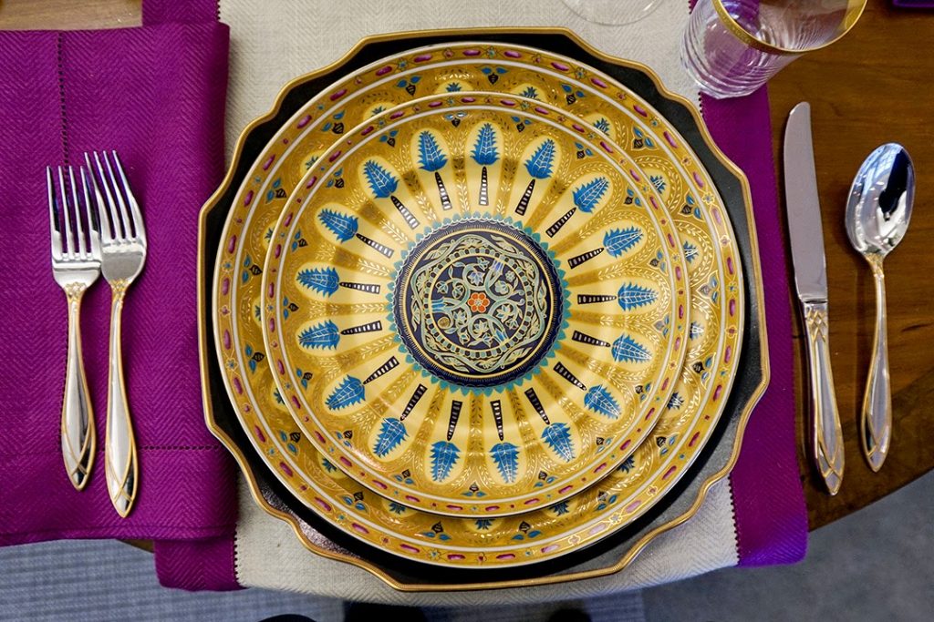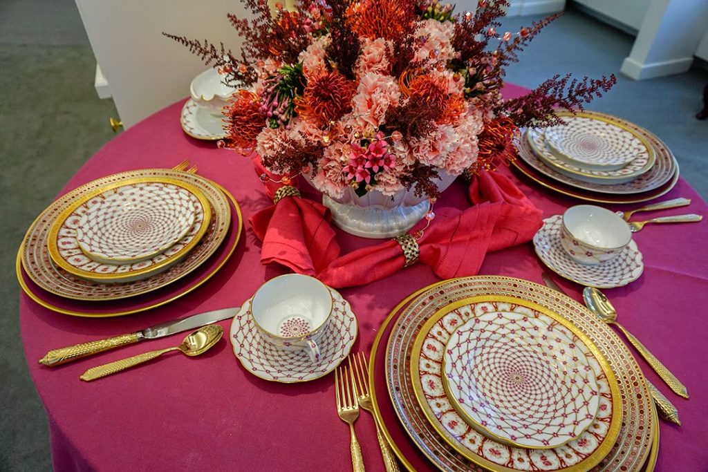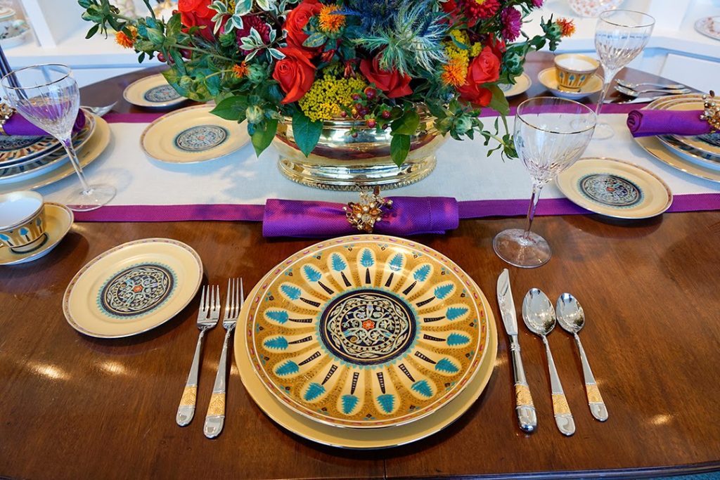 Is this not the most beautiful thing you've ever seen?! I'm so in love with all the colors of the table, the gold dinnerware, the vibrant flowers... stunning.