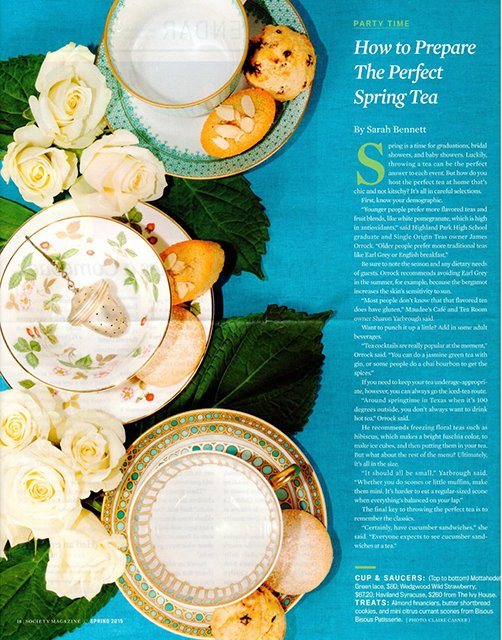 We are occupying two-thirds of the picture above in Society Magazine's spring issue talking about how to prepare the perfect spring tea! And let us tell you, tea is something we are passionate about. Take a look at the article above, or if it's easier, you can read it below.