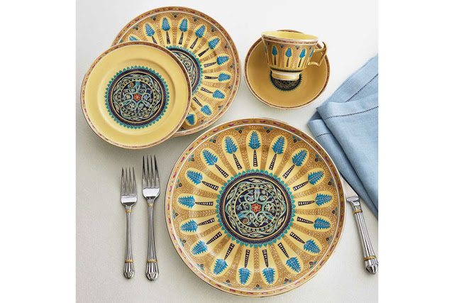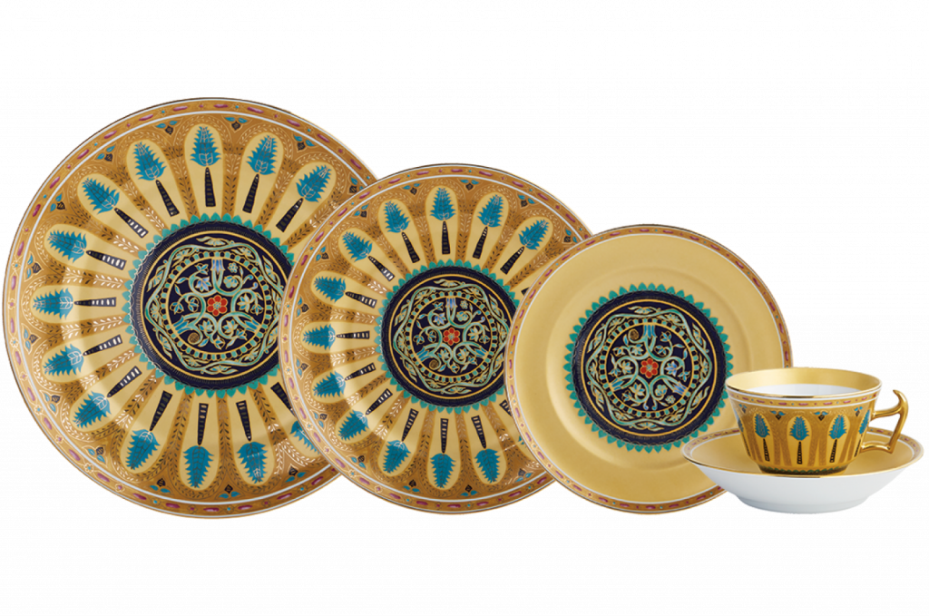 Palma is a reproduction of a dinner service, circa 1840, designed by Fyodor Solntsev, the great Russian art historian, who painted interiors for cathedrals and designed much of the Kremlin under the patronage of Tsar Nicolas I.