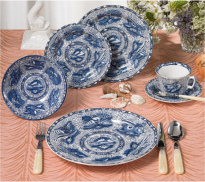 As the embodiment of waterfront delights and seafaring beauty, Blue Torquay symbolizes what summer is all about: beach, food and having fun together. It is the quintessential ‘summer party’ design, able to match with an array of table settings. From your dining table, to patio, or dockside picnic, Blue Torquay can accompany all your warm-weather amusements, especially since its durable, ironstone material can hold all your yummy dishes and is dishwasher safe!